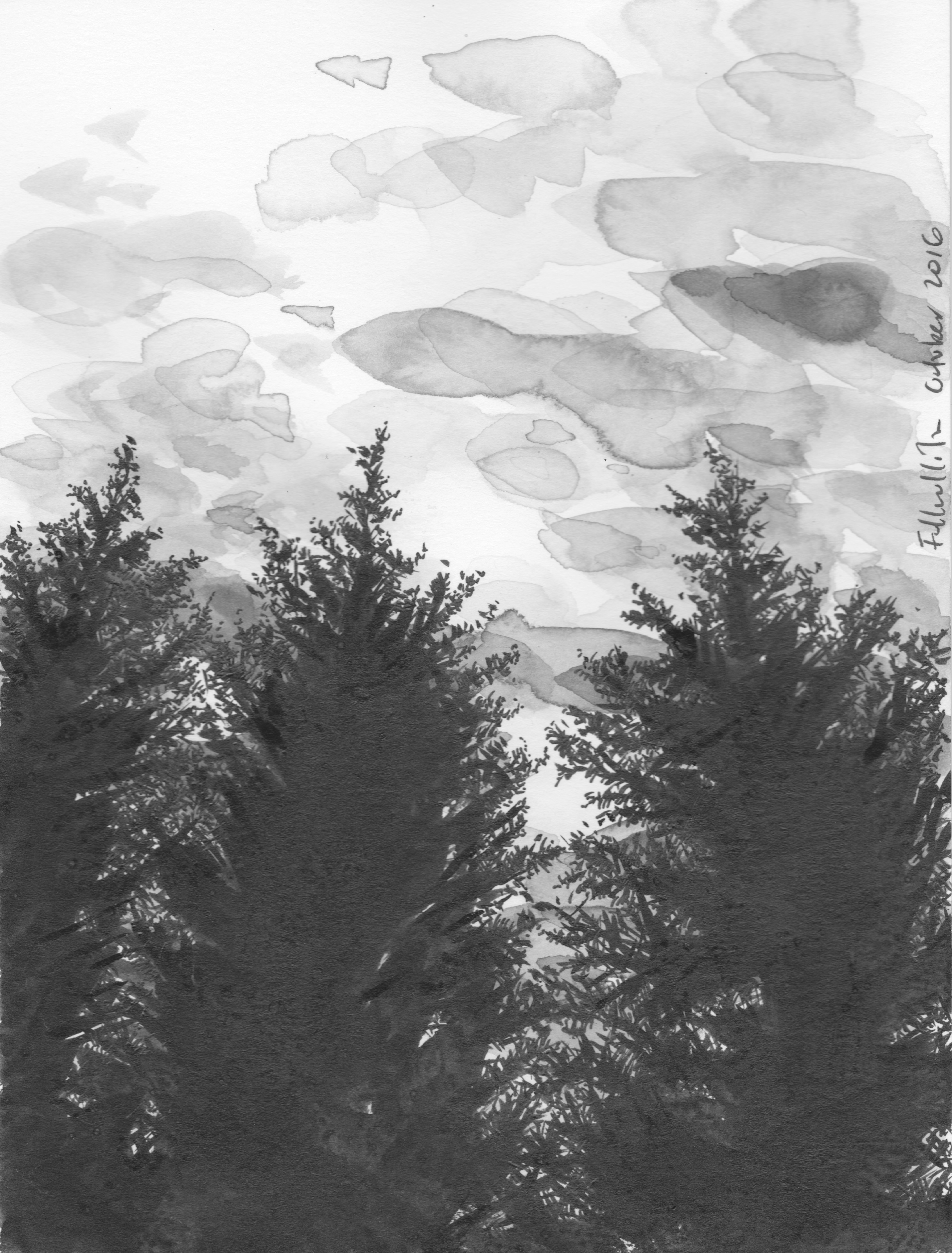 Pine & sky study #sketch w. India ink & brush for #Inktober 2016 (October 2016, 6″x8″ on 140 lbs vellum)